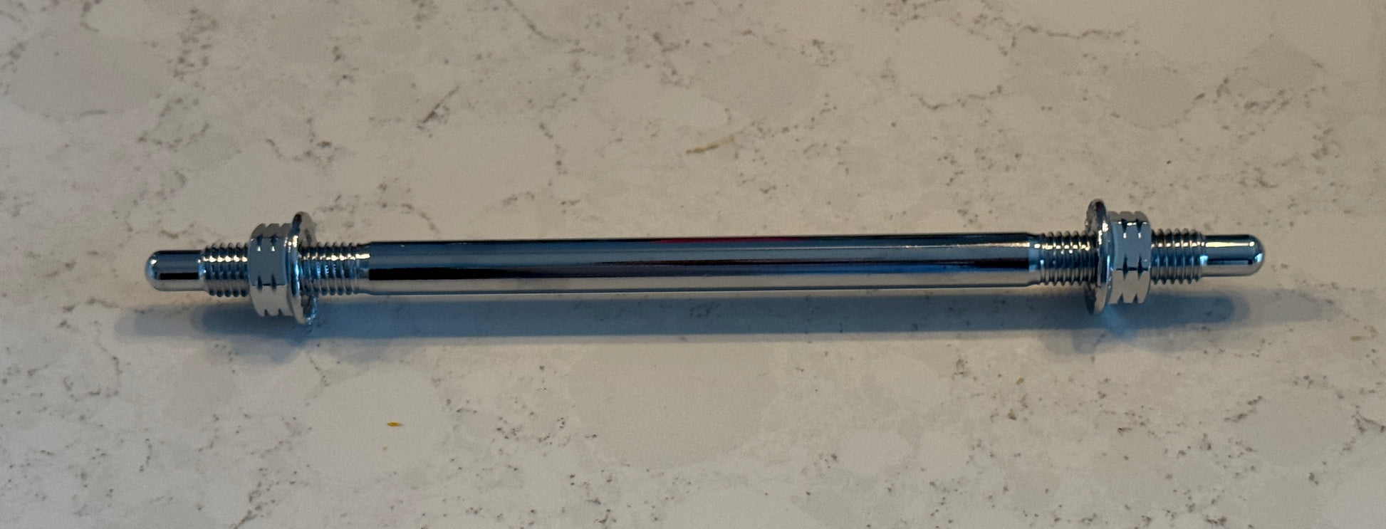This is our standard length 12mm axle for razor bikes. It includes 2 flange nuts and is just over 8.25" long (thread length).